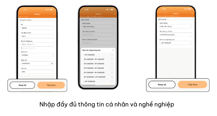 Sau khi liên kết tài khoản thành công, Quý khách vui lòng điền đầy đủ các thông tin cá nhân và nghề nghiệp sau: