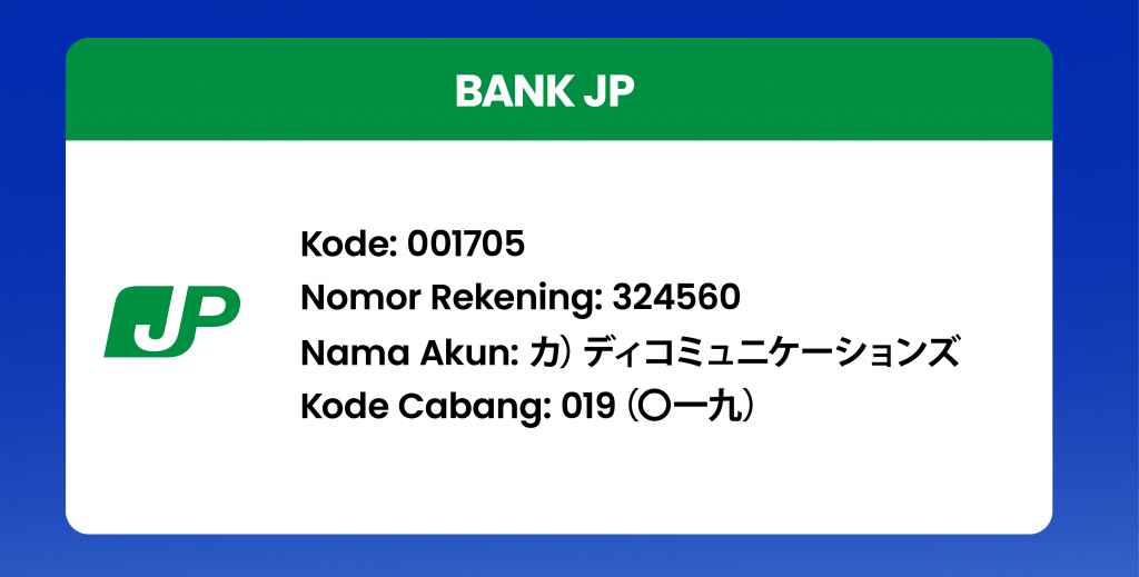 • Deposit menggunakan Kartu DCOM di ATM Yucho atau JP Post Bank
