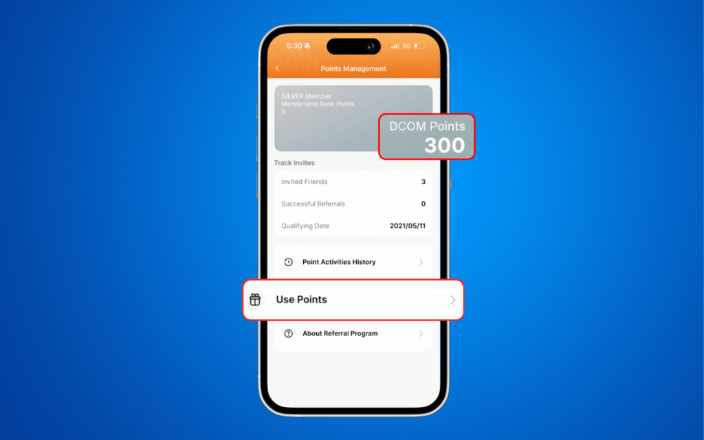 Once confirmed, your Points will be successfully converted to DCOM Balance.