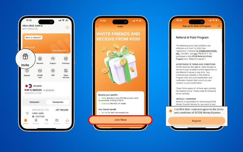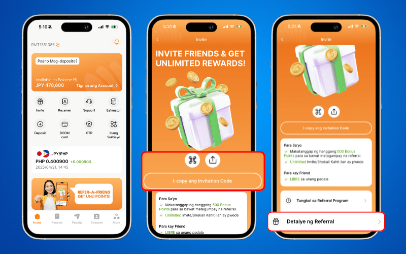 Maaari kang maka-kuha ng Bonus Points sa pamamagitan ng Referral (Shokai) Program sa DCOM Money Express App.