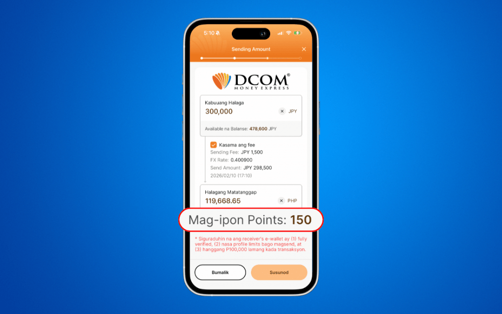 Narito kung paano maka-kuha ng points sa bawat successful remittance transaction gamit ang DCOM Money Express App.