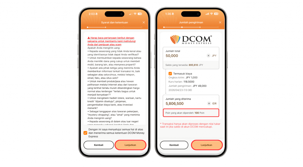 Sekarang kirim uang ke kampung halaman bisa kamu lakukan langsung dari genggaman tangan! Dengan aplikasi DCOM, proses pengiriman uang jadi lebih cepat, praktis, dan aman tanpa perlu antre atau datang ke kantor. Cukup beberapa langkah di aplikasi, dan uangmu langsung dikirim ke penerima di negara tujuan. Jika dana sudah didepositkan, Anda bisa mengirim uang langsung ke mana saja.