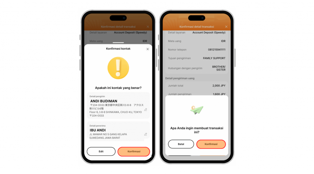 Langkah 5: Setelah memastikan data pengirim dan penerima benar, klik Konfirmasi.