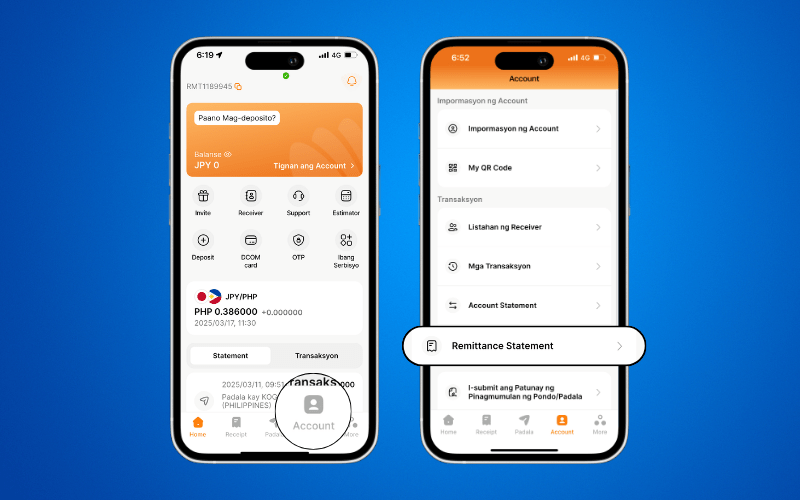 1. Buksan ang DCOM App at pindutin ang Account at pindutin ang Remittance Statement