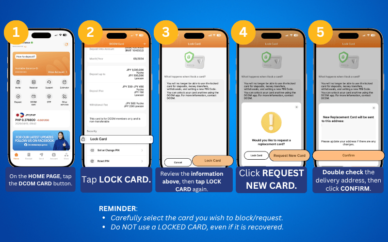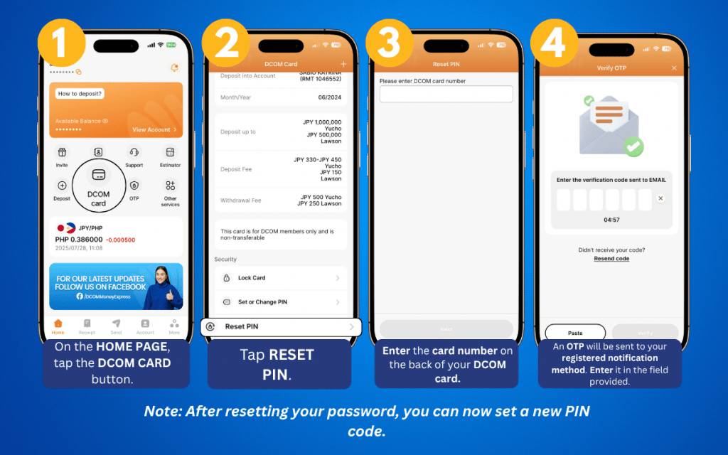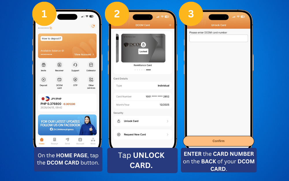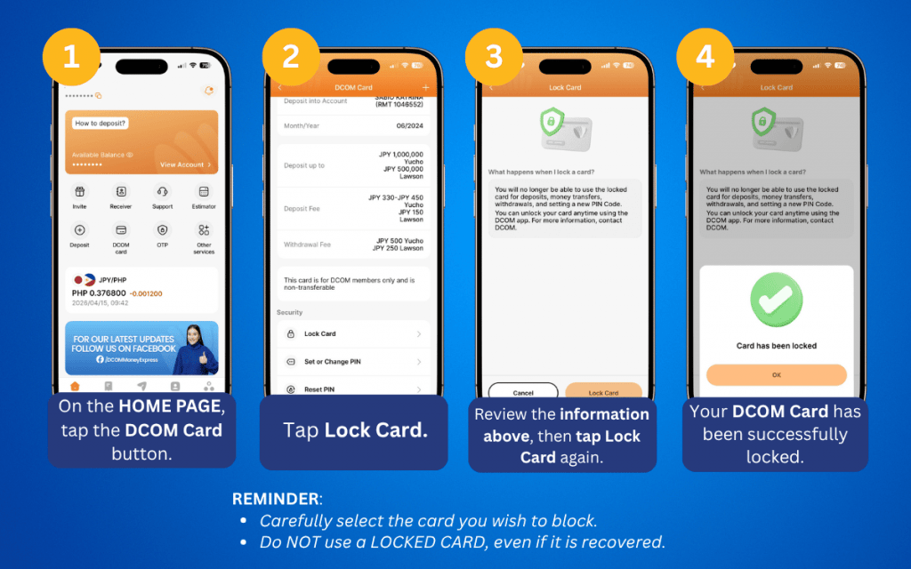 Your security is our priority. If you suspect your PIN code has been compromised, you can quickly reset it using the DCOM App. Enjoy peace of mind knowing you can manage your card’s security anytime, anywhere.